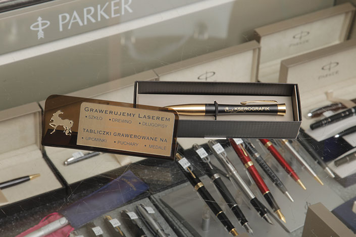 Dyplomy okolicznościowe na deskach i laminatach grawerskich, znakowanie art. pismiennych, grawerowanie szkła, tabliczki grawerowane